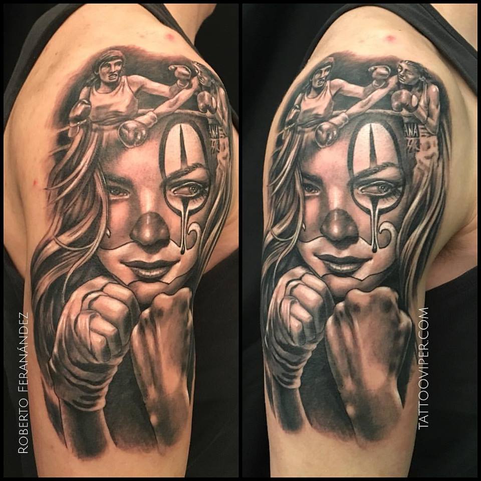 tatuaje boxeadora black and grey Roberto Fernandez Giordano